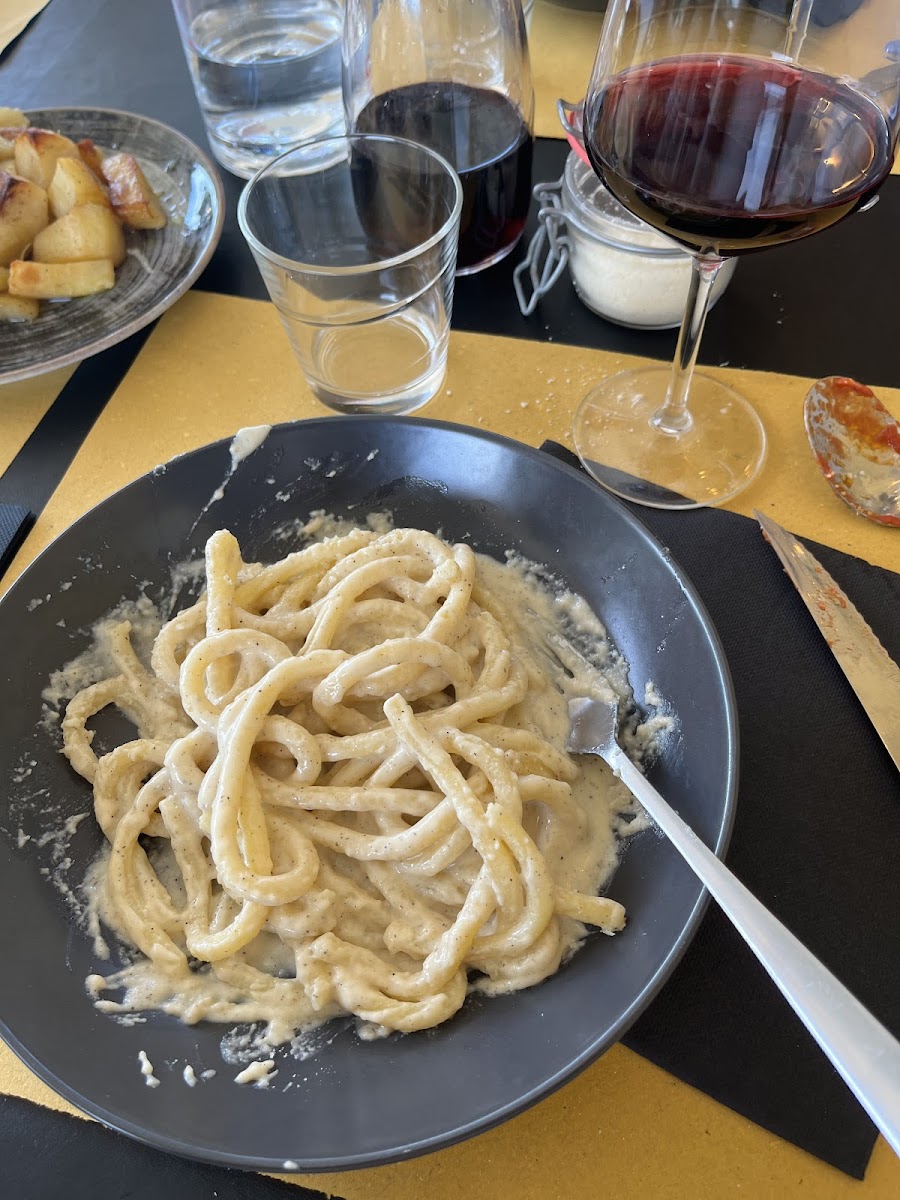 When it comes to pasta, the Pici Cacio E Pepe stands out as a must-try. Handmade pici noodles tossed in creamy Pecorino cheese and freshly cracked black pepper deliver a comforting, rustic dish that feels like a hug on a plate. And for the main course, nothing embodies Florence quite like the Bistecca Alla Fiorentina Con Patate Al Forno. This iconic Tuscan steak, perfectly grilled and served with oven-roasted potatoes, showcases the restaurant’s commitment to quality ingredients and traditional cooking techniques.